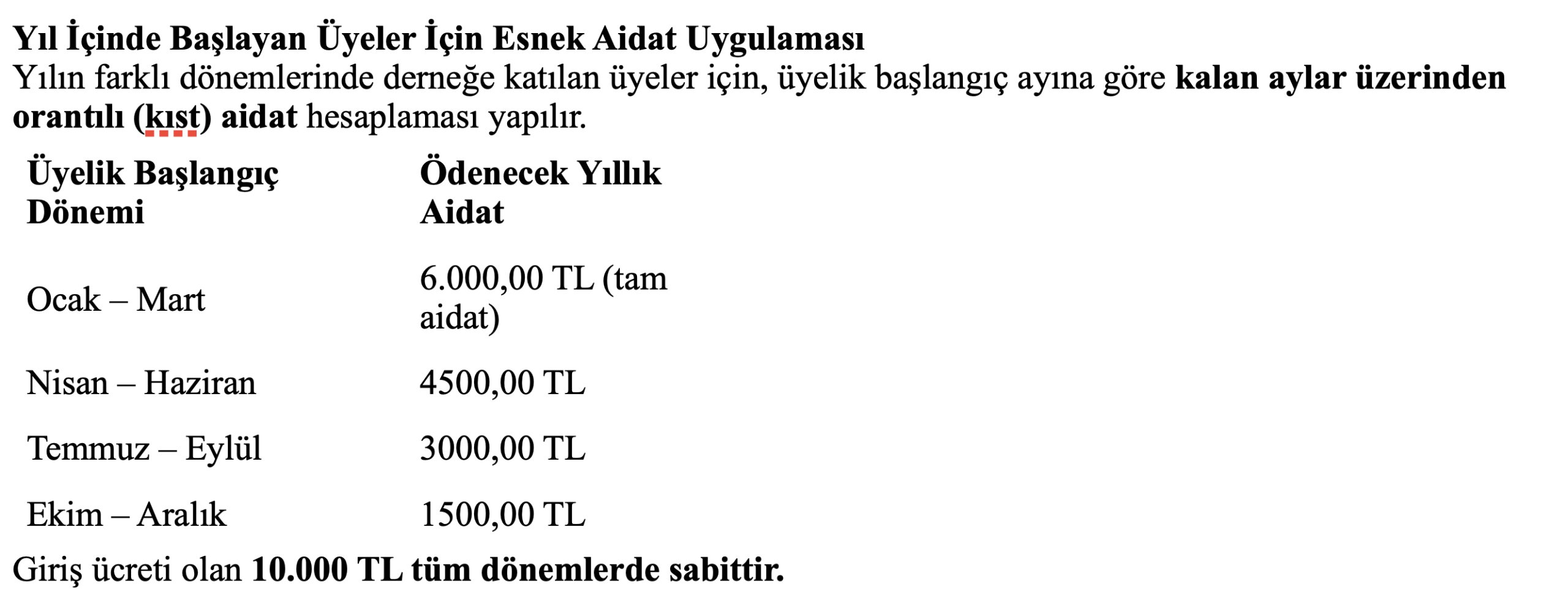 Kurumsal Üyelik Ücretleri